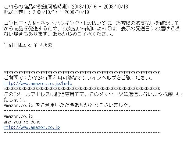 欲しいものリスト:CD 【卑怯戦隊うろたんだー】 12月17日発売予定 新星堂で予約可能: ttp://www.shinseido.co.jp/cgi-bin/WebObjects/Catalog.woa/wa/detail?r=HATCH-804 インターネットアニメって…。もうホントアニメ化しちゃえよ。そん時、作画監督は是非、鼻そうめんPにやっていただきたい。 密林、楽天で予約可能 まさかKAITOの中の人が歌うとは…! しかも、【マジスパイダー】のPVを小林オニキスさんとbakerさんが作るなんて!! そんなん、買わないわけにはいかないじゃないか!! くそぅ…。もうホントになんて卑怯なんだーー!! あ、そうそう。 もちろん、狙うはオリコン2位!! …ていうか、シンPって何者? 【みくのかんづめ】 12月3日発売予定 密林で予約可能 遂にOSTER project全国デビュー!! おーめーでーとー!! フリトークが非常に気になります。今度はどんな放送事故が起こるのかが。 あと、【恋スル大合唱】も気になる。あの人って誰ですか!! 相変わらず、絵に定評のある友人(というか、Yおじさん)の絵は可愛くて素敵だ。 そりゃ、じっとなんてしてられないよな。 欲しいものリスト:書籍 【みくよん】 10月30日発売予定 楽天、密林で予約可能 とあるボカロ情報サイト様で【みくよん】が書籍化されると聞き、ためしにと本家に行きうっかり泣いて即、購入を決めたモノ。 要するに衝動買いですが、何か? 【本家サイト様】 なぎみそ。SYS ttp://nagimiso.blog.shinobi.jp/ 頭に“h”付けてGo!して見て読んで、そして泣けば良いと思うよ。 【がくっぽい人】も好きだ。 【絶望先生 DVD付き初回限定版 第十六集】 2009年2月17日発売予定 密林で予約可能 ¥3470 キツイです。非常にキツイです。(フトコロ的な意味で と言いつつ、どっちも予約しましたけど。 あんだけお行儀の悪い商売を叩いてたのに、その張本人がやりますか。 と言いつつ、これからも久米田先生に着いていく所存ですけど。 あと、やっぱ【サヨナレ】はないと思う。 欲しいものリスト:フィギュア 【ねんどろいど 初音ミク】 好評発売中! コレ、何故か2コ注文しちゃったんだ…。気付いたらヤツら、2匹もカートに入っていやがったんだよ。 危うく3匹目もカートに入りそうだったんだよ。 …まぁ、いいや。 密林から【お支払い番号】が一向に来ない。確保されるのか非常に心配です。 12月28~31日が配送予定日って書いてあるから番号は12月かな…。 どうやら、今年最後に私の元に届くモノは【ねんどいろ 初音ミク】になりそうです。 それって、どうなんだろう…。 【Figma 初音ミク】 好評発売中! ホントは1/8スケールの方が欲しかったんだ。ていうか、現在進行形で欲しいんだ。 でも、アレって大人気で買えないんだ。常に値段が高いのしかなくて。 で、気付いたらコレ注文しちゃってたわけで。 orz コレも【お支払い番号】が来ない。 配送予定日が12月1~2日だから、まだなわけですか。待ち遠しいなぁ。 そういえば、この商品に密林で【パンツじゃないから恥ずかしくないもん!】タグが付いてて吹きました。 誰だ、ストライクウィッチーズタグ付けたの!! 欲しいものリスト:ゲーム 【初音ミク-Project DIVA-(仮称)】 2009年発売予定 8月31日(初音ミクリリース一周年日)に公式サイトオープンとはSEG○やってくれる。 すごいね。ミクがゲームになっちゃうなんて。 でも、もっとすごいのは、コレを一般の人、みんなで作るってこと。 …ちょっと、誤解招く言い方だな。 えー、このゲームに収録される曲とミクの衣装デザインをピアプロで公募して作るってことがすごい。 自分がデザインした服をゲーム内でミクが着るなんて、かなり嬉しいと思う。 ホント、クリプトンって寛大だよなぁ。色々と分かってらっしゃる。 MIXING BOXのミクショナリーも「クリプトン、分かってるなぁ」の一言しか出てきませんでしたよ。 このゲーム。 購入するにあたって個人的には一つ問題がありまして…。 PSPを持ってないってこと。 来年、絶対にPSP買おう。ゲーム出るまでに絶っ対、手に入れてやる! それにしても、VOCALOIDここまで来たか。 だって、実際【初音ミク】って、ただの【ソウトウェアシンセサイザー】なんだぜ? それがゲーム化したりfeat.初音ミクってことで沢山のCDが発売されたりグッドデザイン賞受賞したりって…! スゲーなぁ。ホント、ミクはすごいなぁ…。 欲しいものリスト:ゼルダの伝説 【Twilight Princess Soundtrack】 好評発売中!(ただし、海外のみ) ボカロ関連の商品以外だって欲しいものはあるわけです。 しかも、手に入らないから尚更…! N天堂はサントラとか、なかなか売り出してくれないから困る。 まぁ、でも。 もし、N天堂がゲームグッズを沢山売り出すようになったら、なったで私は「あー、N天堂もそういうことするんだ…」とか幻滅するに違いないんですけど。(なんて、勝手な話!) 今だって、DSiなんてものを売り出そうとしてることに、ちょっと「うわぁ…」って思ってるわけでして。 カメラつけるなんて、N天堂っぽくないことしますね。これからソフトに期待…できるのかなぁ。 以前あった