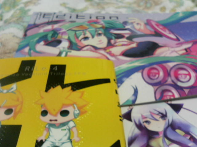 以下、戦利品。 ※ポンコツケータイで撮ったので、画質悪いです。 <スガさんのトコで買ったポストカード。写真には写ってないけど、他に3枚ある。 <上:119さんの画集。左:なぎみそさんのリレヨン。右下:森之宮神療出張所の先生本。 <CD11枚。ボーマス6の時より買った量増えたな…。 <DVD3枚。…あ、のぼり棒のDVD買うの忘れた。 <割り箸とペヤング。…なんで、ボーマス行ってペヤングゲットしてんだろう、自分。 ペヤングは『だばあ』させずに、おいしくいただきます。 だいたい、こんな感じです。 これだけあれば、しばらく余裕で戦えるぜ…! あ、そうそう。 ボーマス6の時もそうだったんですが、コスプレイヤーの皆さんがすごかったです。 特に、『トエト』の帽子被ったちびっ子が、もう可愛くてね…! 見た瞬間、『ロリ誘拐』が頭に流れたとか……ないよ!べ、別にロリコンじゃないよ!ホントだよ! 今回も非常に楽しかったです、はい。 また行きたいな。 |